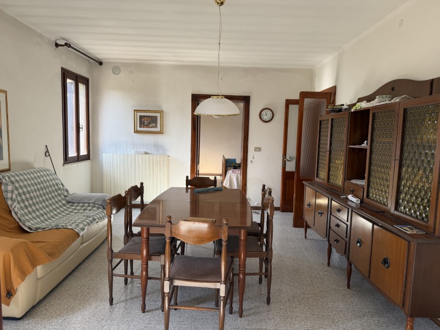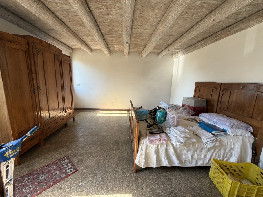 In zona tranquilla ideale per chi cerca pace e vicinanza ai servizi abitazione in stile rurale di ampie dimensioni disposta su n. 2 piani formata da paino terra con atrio, cucina sala da pranzo, salotto, ripostiglio, bagno e cantina. Porzione di fabbricato allo stato grezzo adiacente. Piano 1° con n. 6 vani letto, bagno, granaio cn tetto in legno e tavelle a vista. Completa a proprietà un ampia corte esclusiva con aia e basso comodi.